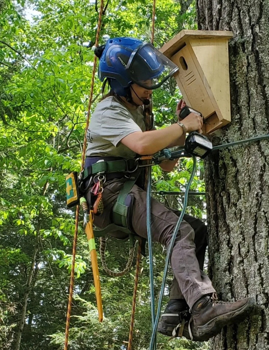 Standing snags and trees with dead wood or a cavities in them are excellent habitat for many bird species and small mammals such as bats and flying squirrels. Unfortunately they can also pose a risk when in close proximity to ourselves and our homes, requiring us to remove this important habitat feature. By installing habitat boxes in healthy trees on your landscape we can help keep our wildlife around even when we need to remove a tree or dead branch to keep you safe.